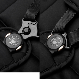 Die innovative Magnetschnalle ist nach außen entmagnetisiert und ermöglicht so eine mühelose und sichere Sicherung deines Kindes.